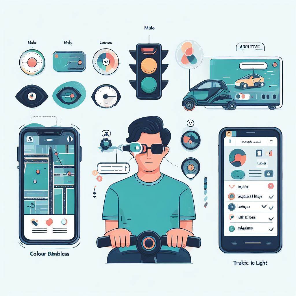 Take a little extra time assessing traffic colors by cross referencing position and brightness. Enable colorblind modes on GPS apps and phones to provide audio color alerts when possible. Apps can also scan streetlights and identify colors if uncertain.
